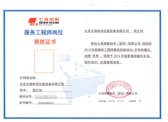 • 七海測量服務(wù)工程師崗位資質(zhì)證書