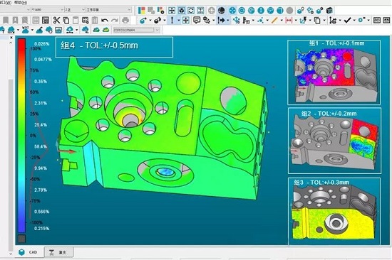 非接觸激光探測(cè)以其高效、全面的檢測(cè)能力獲得用戶的青睞,PC-DMIS Laser軟件模塊提供高效的點(diǎn)云收集和尺寸分析評(píng)價(jià)功能,支持點(diǎn)云與CAD比對(duì),既可實(shí)現(xiàn)所有規(guī)則幾何特征的形位公差評(píng)價(jià),也可對(duì)復(fù)雜曲面曲線進(jìn)行色差圖分析;PC-DMIS Laser也可對(duì)收集到的點(diǎn)云數(shù)據(jù)進(jìn)行過濾和網(wǎng)格化封裝處理。