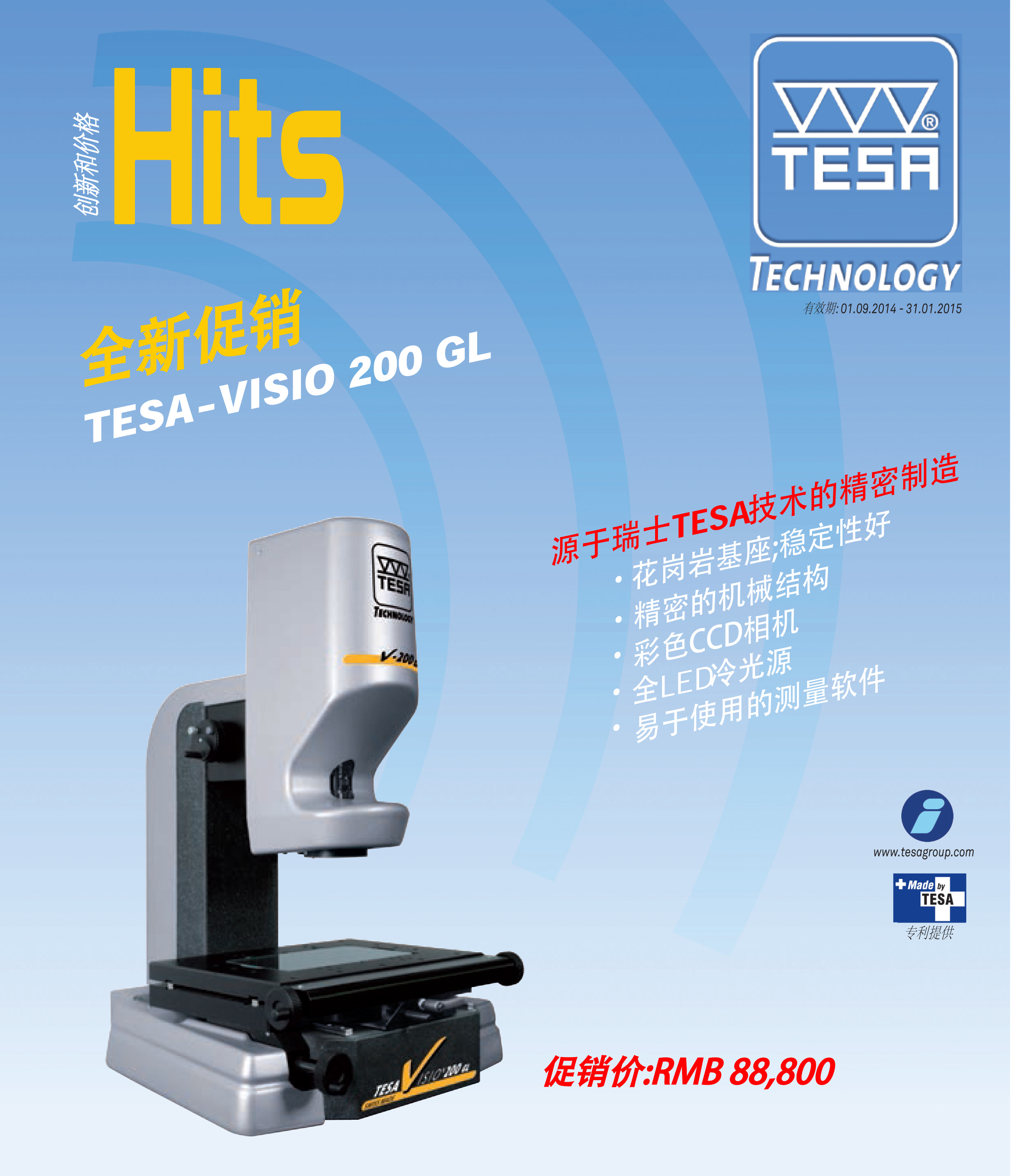 TESA 影像測量儀大幅讓利,即日起至2015年1月31日止,TESA VISIO 200GL手動型影像測量儀火熱促銷中