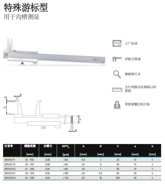 必不可少的量具 ——卡尺是世界上受歡迎的測量工具之一。由于其結(jié)構(gòu)簡單、方便握持且操作安全它們受到各種類型用戶的高度 贊賞。 TESA 卡尺具有不同種類的多種型號,可為每個人提供滿足其所有計量需求的適合量具的可能。帶表、數(shù)顯或是游標的帶或不帶數(shù)據(jù)傳輸功能?,用于何種應(yīng)用類型? TESA完整的卡尺系列通過這些典型的要求分類來滿足大多 數(shù)用戶的日常測量需求。