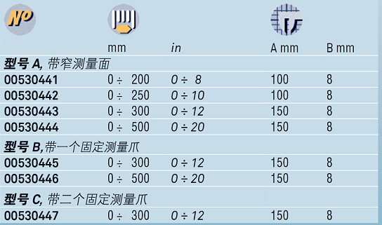帶窄測量面以及帶一個或兩個固定測量爪的型號