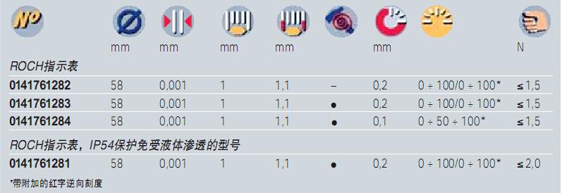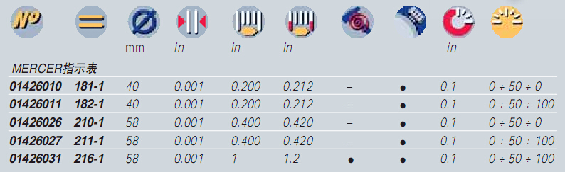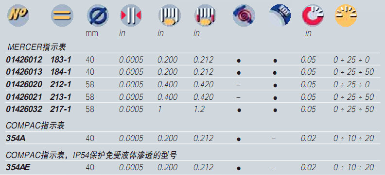 0.0005in讀數(shù)/40或58mm表盤直徑