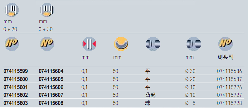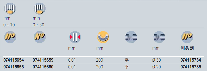 | 訂貨號 | 訂貨號 | 量程mm | 分度值mm | 測量面 | 測量面 直徑mm | |