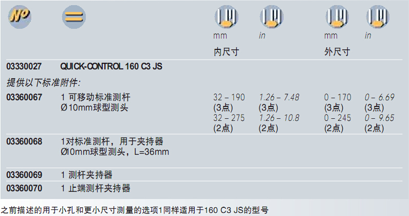 | 03360067 | 1可移動標(biāo)準(zhǔn)測桿,直徑10mm球型測頭 | | | | | |