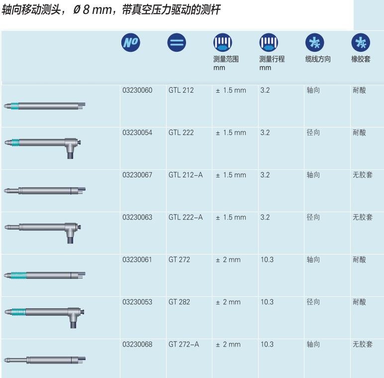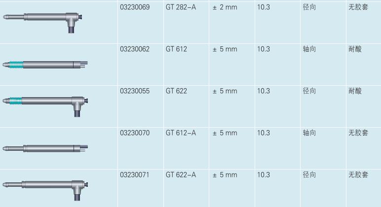 標(biāo)準(zhǔn)測頭(帶軸向纜線的GT 212測頭)