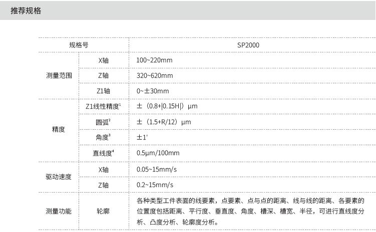 這一舉措,使全新的SP2000系列輪廓儀在滿足大量程測量需求的同時,亦能對零件表面的微小輪廊進(jìn)行評估,典型