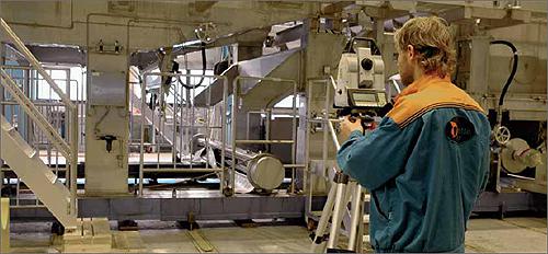以造紙機械為例,通常一條典型的造紙生產(chǎn)線,根據(jù)其寬度和額定的生產(chǎn)量,大概是10米寬,超過30 米長,高度在三層樓上下。重量達到了數(shù)百噸。這個精細的結(jié)構(gòu)包括了鋼支撐結(jié)構(gòu),將移動部分支撐到位。在造紙機的制造過程中,移動機械部分是關(guān)鍵部分,這些機械部件的相互找正非常重要,因為不僅可以避免軋碎和磨壞,同時還可使得運行速度提高,保證每天數(shù)百噸的產(chǎn)量。但是不僅僅是移動部件需要找正,框架也需要進行找正。所有加起來,有超過20 個不同的軸需要找正。